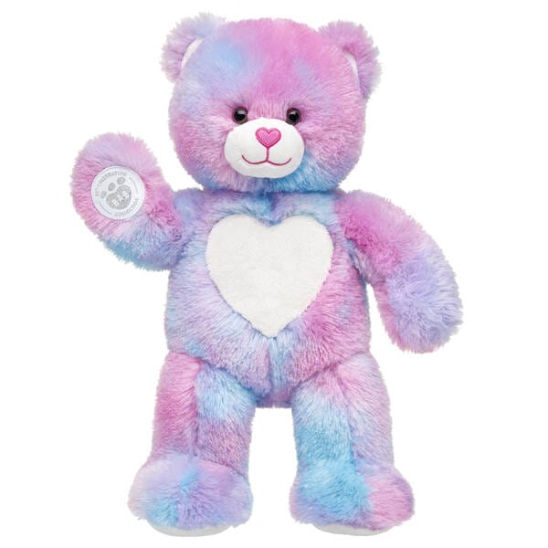 Brighten your day with Furever Hearts Bear! Having first debuted back in 2012, the oh so lovable Furever Hearts Bear has now been released from our Vault as part of our 25th Celebration Collection! This bright bear has swirly pink, blue and purple fur with a white heart in the middle and a commemorative silver 25th Celebration Collection emblem on its right paw pad. Its pink heart nose and sparkly heart paw pad are two other special details that made this adorable bear a fan favourite. In addition to being a must-have item for collectors, this limited edition release makes a great gift idea for someone special.