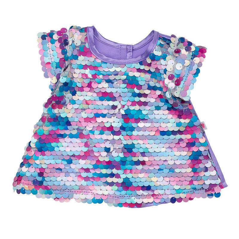 Your furry friend is sure to turn heads when wearing this stunning pink, blue and purple sequin dress.