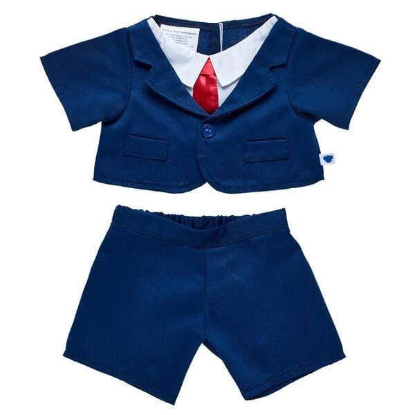 Whether your furry friend has an important business meeting or just likes to look its beary best at all times, this two-piece business suit for stuffed animals is a classic choice. This navy blue suit includes pants and a jacket with a white shirt and red tie attached.